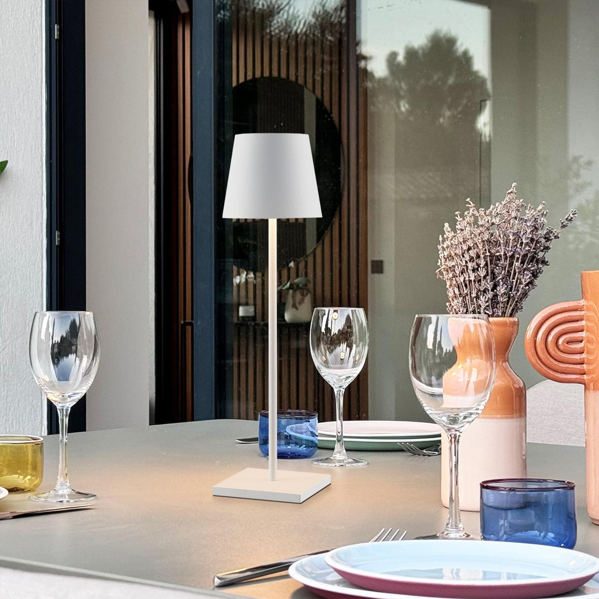 The Clio table lamp is a versatile lighting solution suitable for indoor and outdoor settings. It's perfect for personal use at home, offering portability and touch-based controls for adjusting brightness. In commercial applications, such as restaurants and cafes, it provides intimate table lighting with dimming options. The lamp's IP54 waterproof rating makes it resilient against dust and light water exposure. Additionally, a 10-bank charging station option ensures readiness for establishments requiring multiple lamps, making it an ideal choice for various settings.