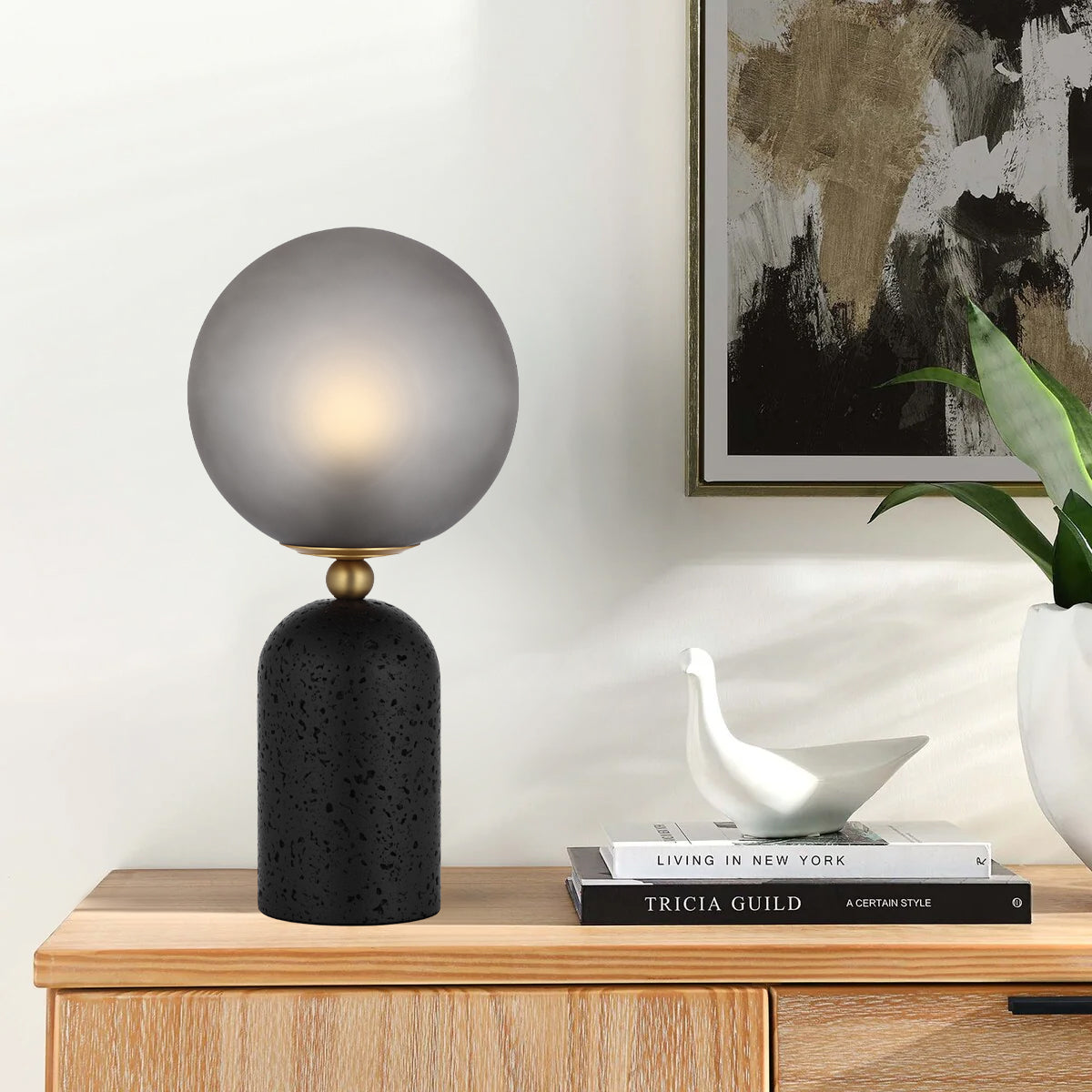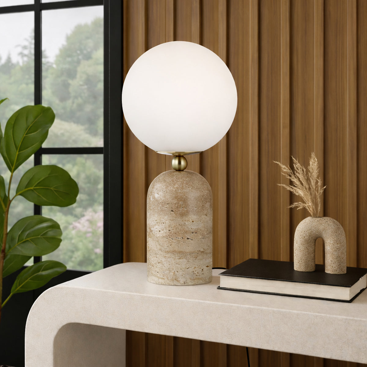 The Gina table lamp effortlessly blends modern design with timeless elegance. Featuring a durable travertine base and graceful glass sphere shade, it is also available as a floor lamp and comes in two stylish colourways—classic neutrals or bold hues.