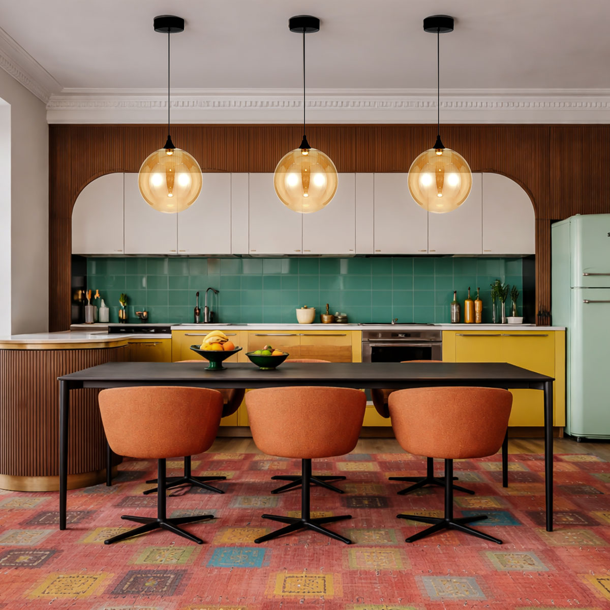The Kupla pendant offers a contemporary statement with softly rounded glass forms, delivering a refined yet playful aesthetic. Available as an eye-catching 15-light cluster featuring a mix of smoke, clear and champagne glass, or as a single pendant in smoke, clear or champagne, it brings versatility to a range of interiors. Crafted from iron and glass, Kupla includes integrated LED lighting with a warm 3000K glow, making it ideal for indoor spaces such as dining areas, stairwells and feature voids.