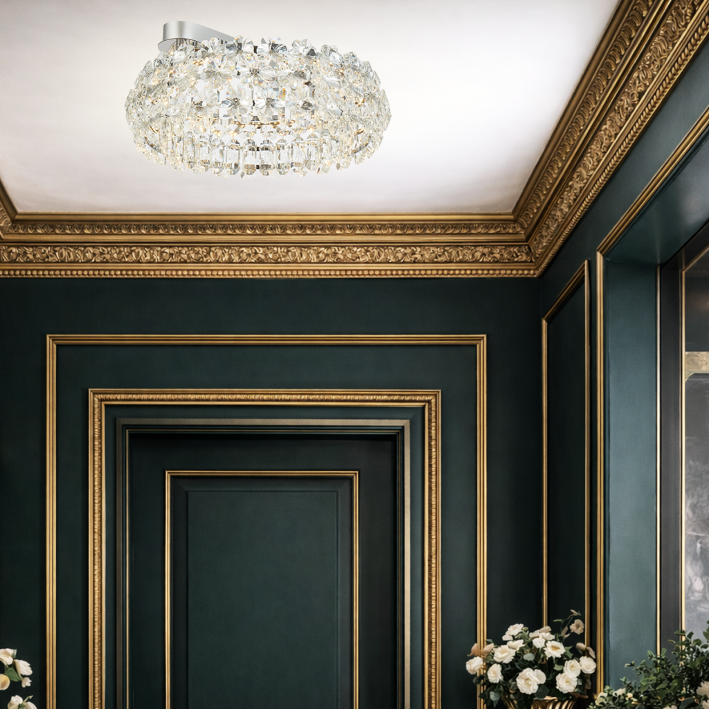The Landis CTC Crystal Pendant Light offers an elegant, contemporary statement for any interior. It’s available in two sizes (50cm or 60cm) and in two finishes — gold or chrome — giving flexibility to match different decor styles. The fixture uses an integrated LED system with selectable 3CCT (3000K to 5000K), so you can easily shift from warm to cool light depending on mood or time of day. It’s also TRIAC-dimmable, letting you adjust brightness for ambiance or functionality. Overall, it blends shimmering crystal elegance with modern, energy-efficient LED convenience — ideal as a striking pendant over a dining table, foyer, or lounge.