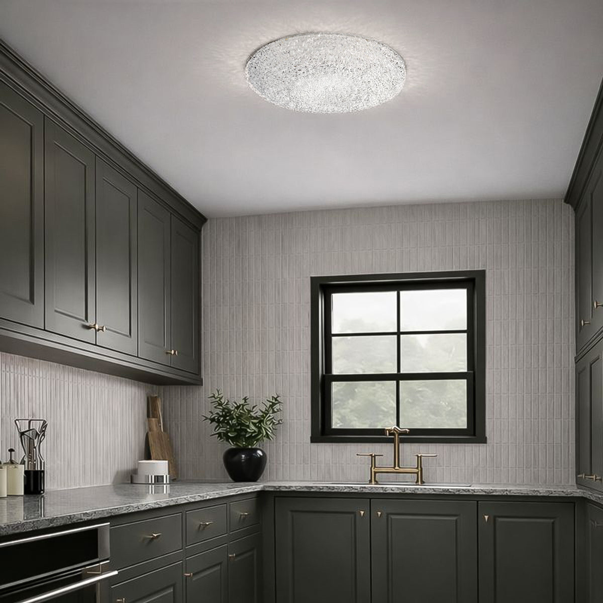 The LEGERO SMART LED ceiling light can easily be used anywhere in your home due to its timeless design, in a living room, a kitchen or a bedroom. The special structured acrylic shade resembles a magical crystal look. Pair with Google Home and Amazon Alexa Via an app (Tuya), the ceiling light can be operated quickly and conveniently via smartphone and you have the option to dim the ceiling lamp as well as adjust its light colour.