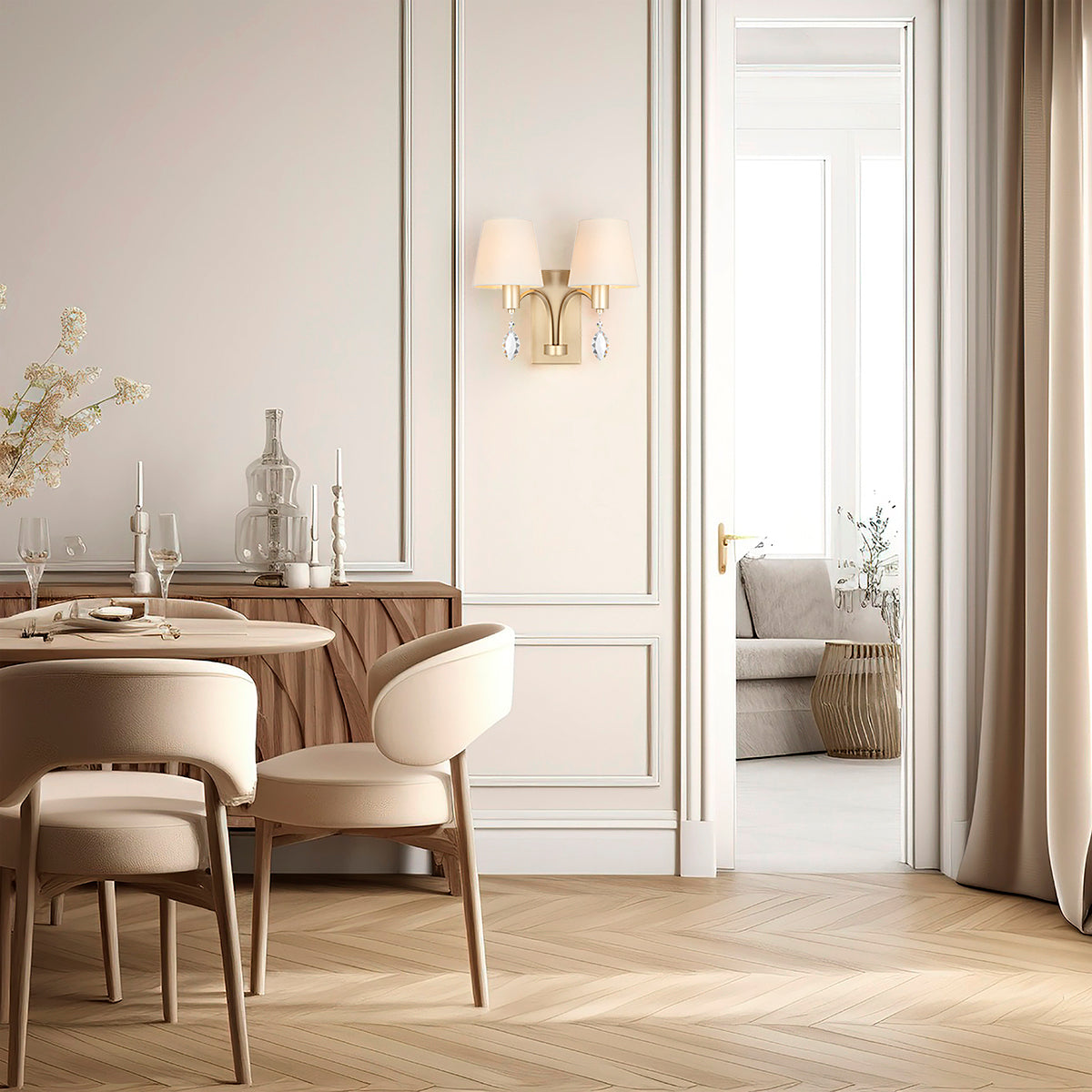The Malvern range offers vintage-style indoor lighting, available in a wall light, table and floor lamp, and various sized pendants. Each piece features a durable iron construction with crystal accents and fabric shades, adding a touch of elegance to any space. The unique Antique Silver colour, with a slight gold tinge, enhances the vintage aesthetic, making the Malvern range a perfect blend of classic charm and modern durability.