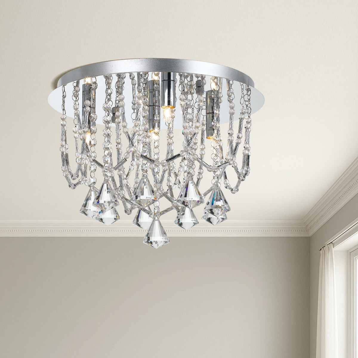 The Sandro Close-to-Ceiling pendant merges elegance with functionality, showcasing stunning crystal elements that add a touch of luxury to any space. Available in two sizes, it offers flexibility to accommodate different room dimensions and design preferences. This pendant light brings sophistication to overhead lighting, seamlessly blending style and practicality for an eye-catching addition to modern interiors.
