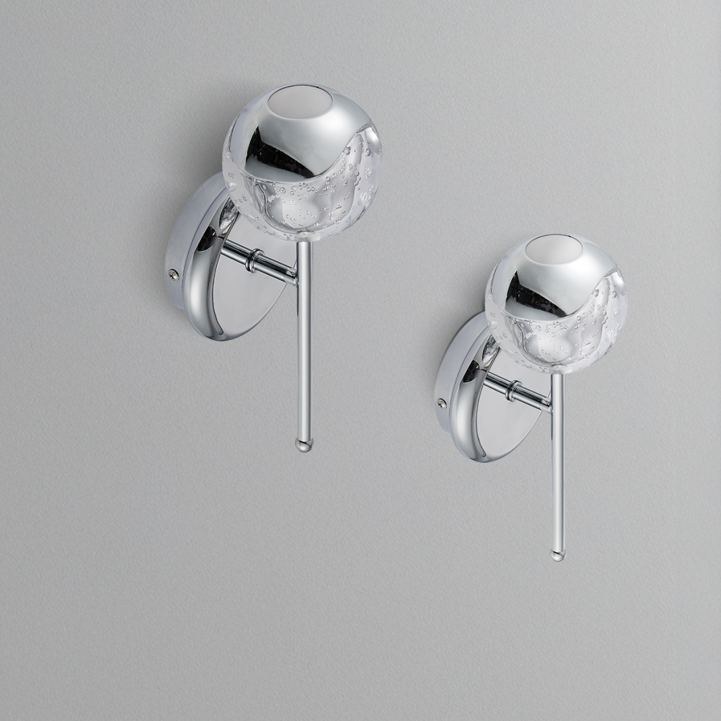 Introducing the Segovia range, a sophisticated collection of wall lights and pendants designed to elevate any interior space. Available in an assortment of sizes and offered in stunning gold and sleek chrome colour options, these fixtures add a touch of luxury to any decor. Crafted from durable stainless steel, zinc alloy, and featuring captivating glass spheres with a mesmerising bubble effect, the Segovia range seamlessly blends modern design with timeless elegance. Equipped with integrated LED technology, these luminaires not only illuminate with brilliance but also offer energy efficiency for long-lasting enjoyment.