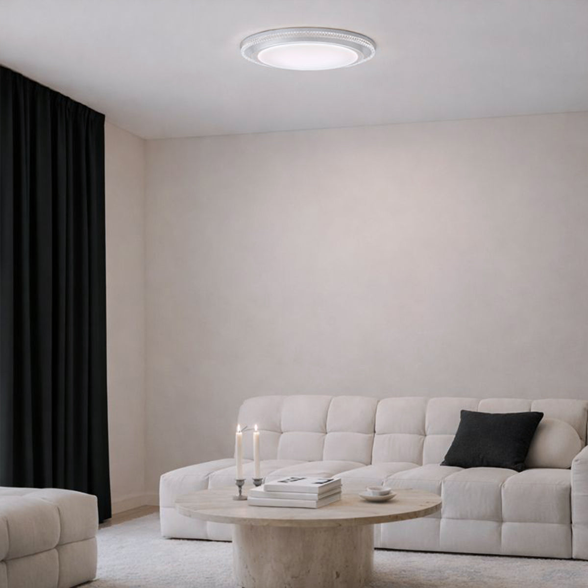 The Altez Oyster light is a modern lighting solution made from sturdy iron, sleek acrylic and plastic diffuser, featuring a crystal-look trim for stylish illumination. With integrated LED technology, it offers 3CCT colour options and is dimmable, allowing for customisable lighting in any space.