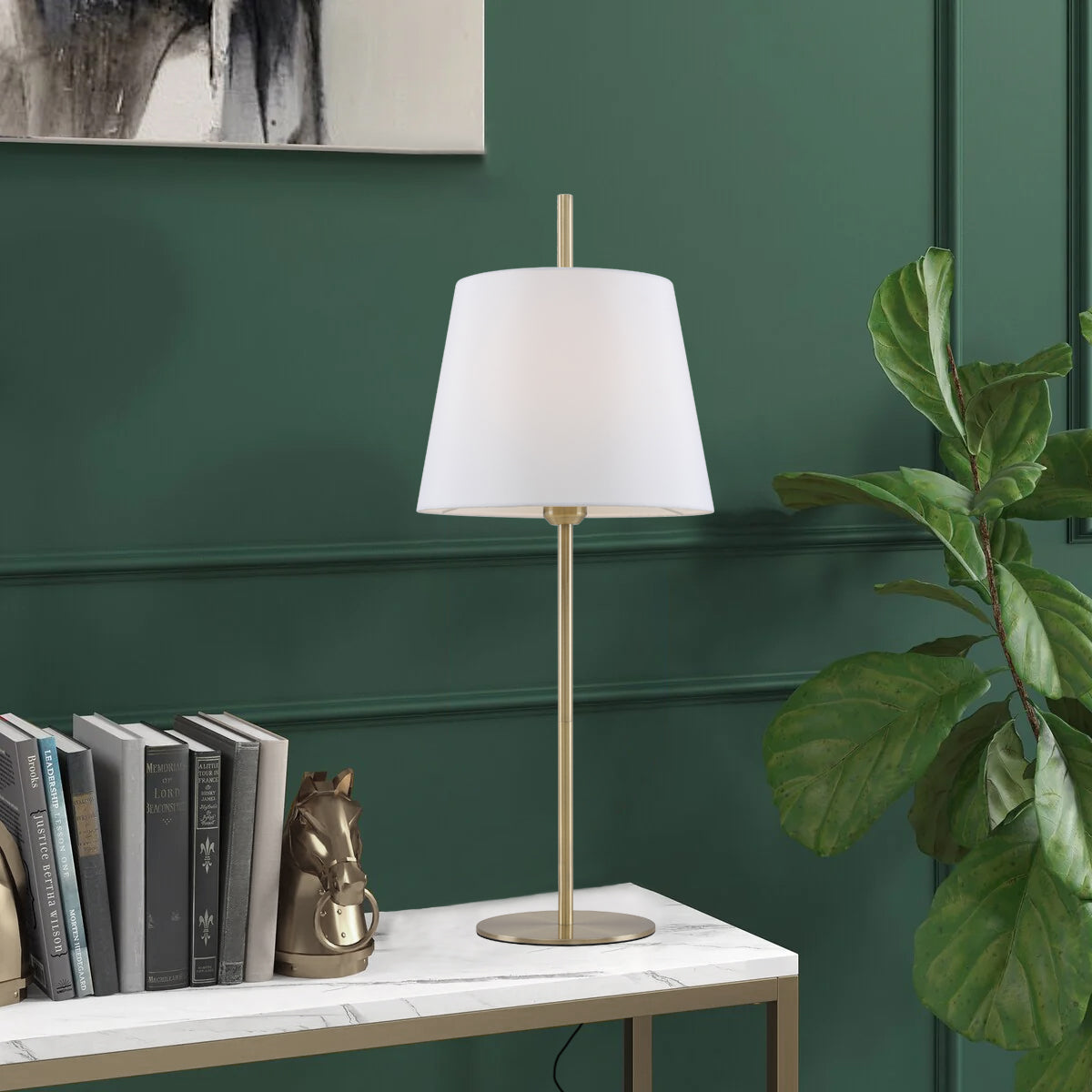 An opulent look by its finish, yet elegant and simple, the Dior features an antique brass finished circular base and column stand topped with a textile shade in blue or white. Perfectly paired to the Nordic trend for added depth and mood, or to a Deco inspired space for added ambiance.