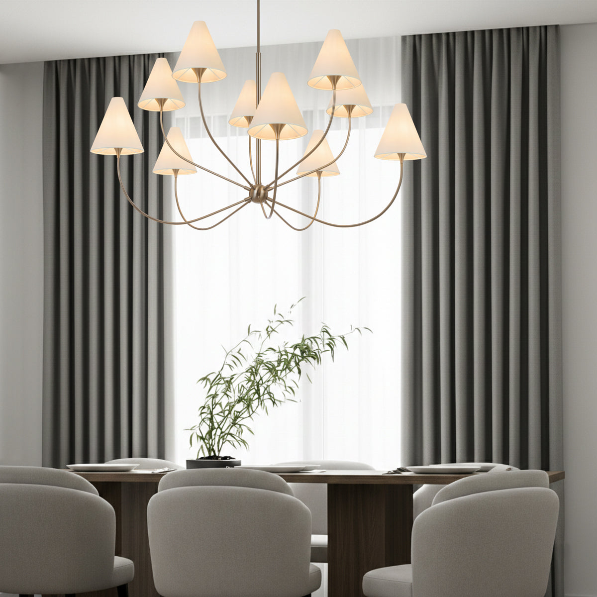 The Farnix range offers a beautifully balanced mix of classic elegance and contemporary refinement. Featuring gently curved arms and tapered fabric shades, these pendants and wall lights create a soft, inviting glow. Available in either nickel matt for a modern, understated look or antique gold for a warmer, more traditional feel, the collection suits a wide range of interiors.