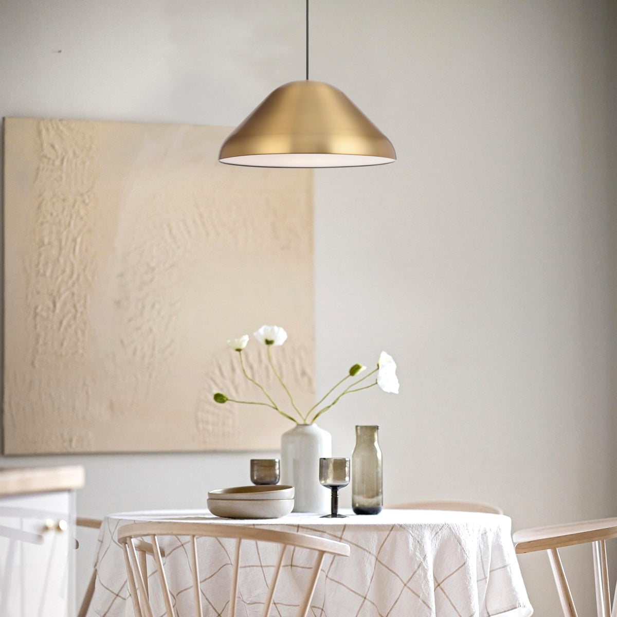 The Hanami pendant range features an elegant blend of Art Deco and Scandi styles, crafted with iron construction and a satin finish. Available in a variety of colour options, this versatile pendant comes in two sizes—22cm and 44cm—making it suitable for use in multiple rooms throughout your home.