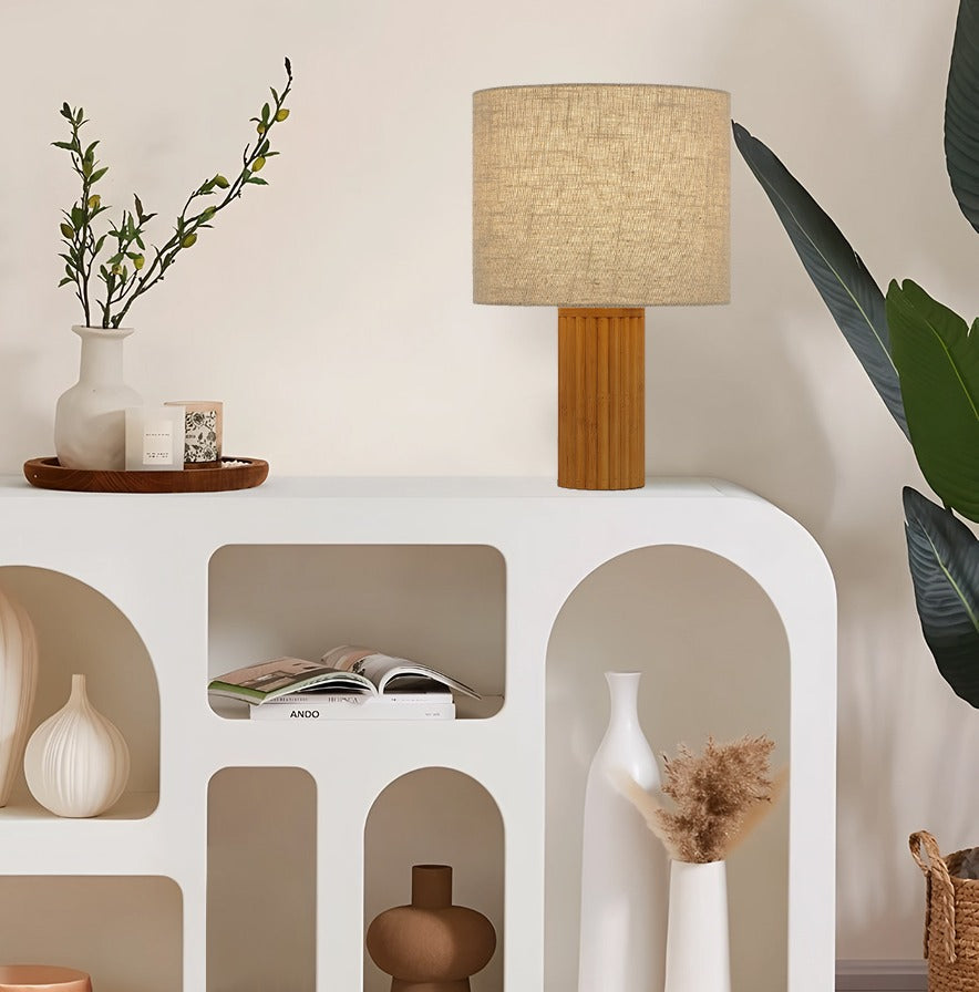 The Jacona Table Lamp combines natural elegance with contemporary design. Its base is crafted from wood, providing a warm and organic touch to your space. The lamp is completed with a fabric shade in a neutral tone, adding a subtle sophistication. This minimalist yet stylish table lamp effortlessly complements various interior styles, bringing a touch of nature and soft lighting to any room.