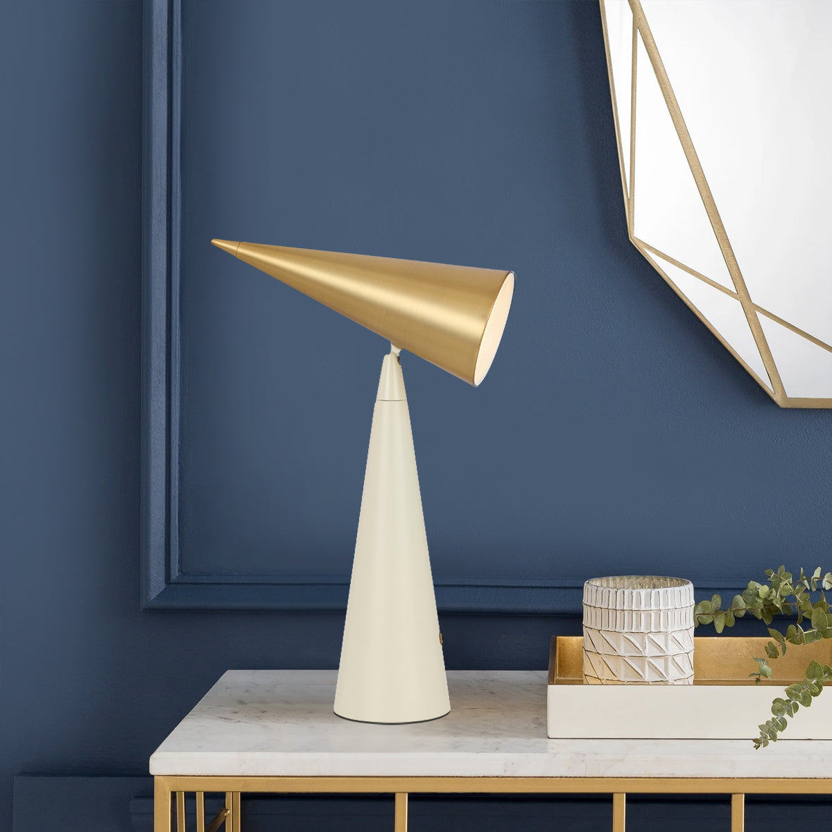 The Jibara range of floor and table lamps features a distinctive shape with an iron construction and a satin finish. Available in two colour options—black with a brass shade and beige with a brass shade—these lamps are perfect for the living room, bedroom, or study/office, adding a touch of elegance and unique style to any space.