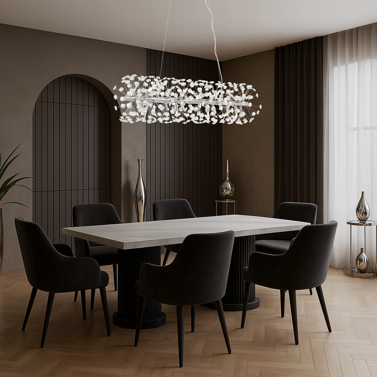 The Lerida range is a stunning masterpiece, where the raw strength of iron meets the ethereal beauty of crystal. This exquisite fusion radiates elegance and sophistication, transforming any space into a realm of pure luxury. Offered in two captivating shapes—a graceful sphere and a sleek, elongated rectangle—each piece is a testament to meticulous craftsmanship and the artistry of design. The bold, unyielding iron embraces the delicate sparkle of crystal, creating a breathtaking contrast that catches the eye and stirs the soul. Whether gracing a chic modern living room or adding an air of opulence to a classic dining area, the Lerida range isn’t just lighting—it’s a statement of timeless allure and refined style, infusing every corner with its irresistible charm.