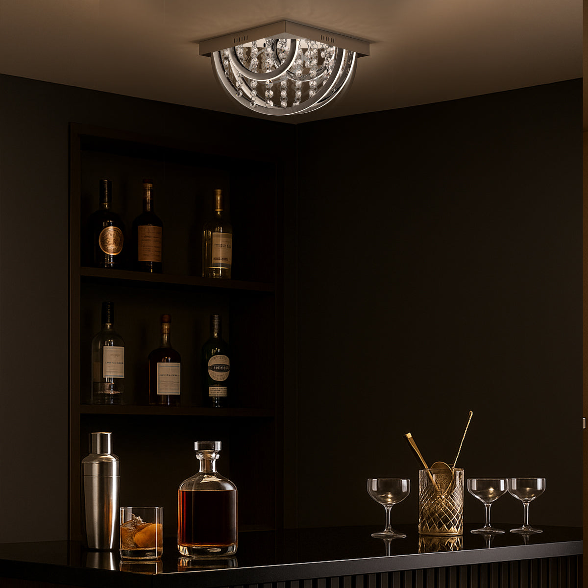 The Luxia range blends traditional crystal elegance with a modern edge, featuring integrated LED lighting and RGB colour options controllable via remote. Available as a pendant or flush mount, it’s dimmable for tailored ambience. Ideal for dining rooms, entryways, or glamorous living areas, Luxia suits those who love a statement piece with a touch of playfulness and sophistication.