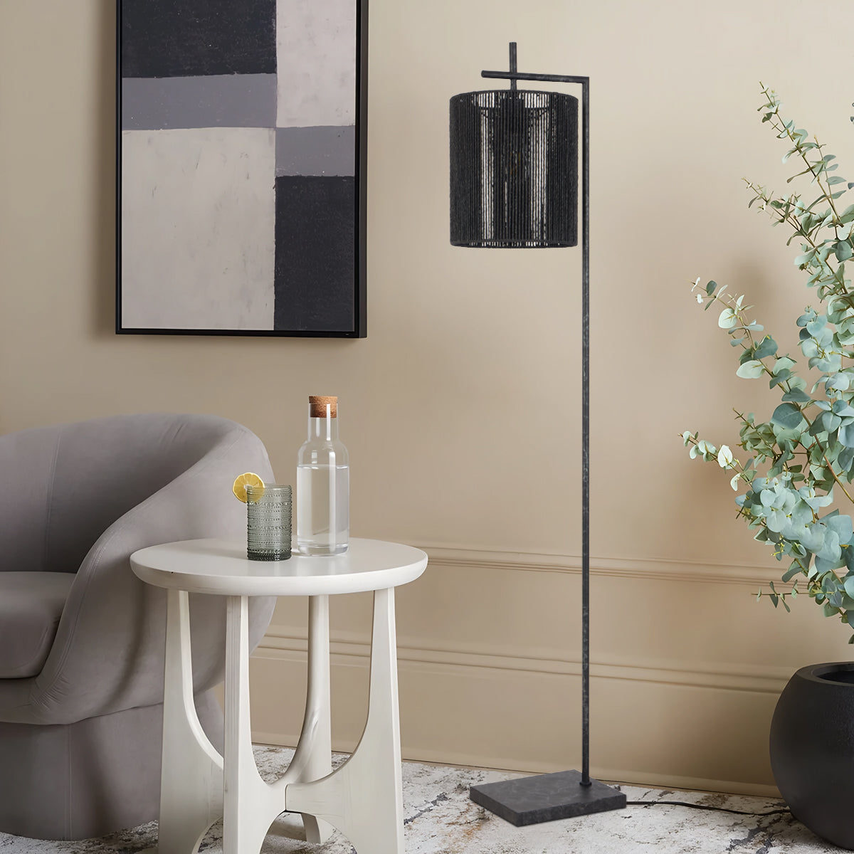 The Lyndra range includes both floor and table lamps, available in two colour options—gunmetal with a black shade and bronze with a natural shade. Constructed from a mix of iron and natural fibers, these lamps add texture and visual interest to living spaces, making them a versatile choice for contemporary interiors.