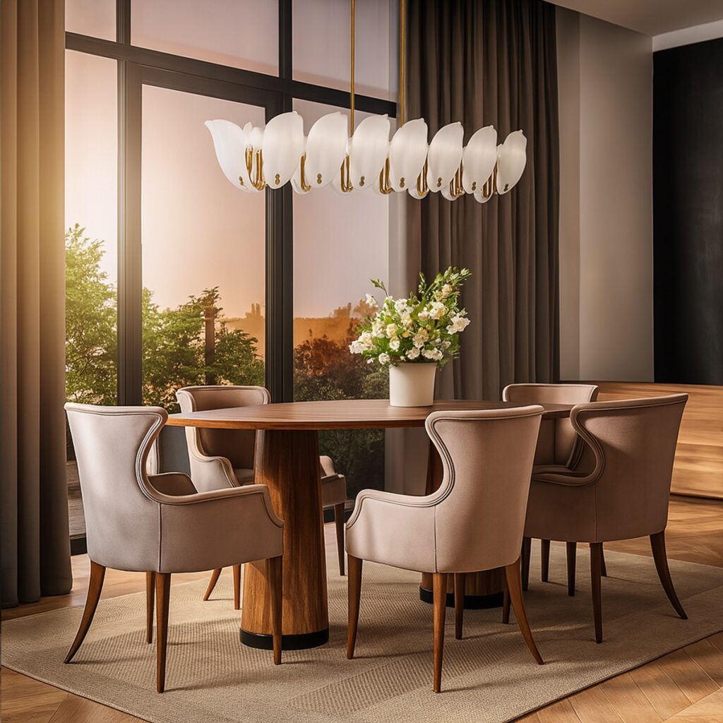 The Monte lighting collection exudes elegance with its refined brass frame and delicate frosted glass accents, reminiscent of natural leaf formations. Available as a wall light and in 8, 12, and 16-light pendant variations, it offers a sophisticated and timeless statement for any space. Whether used as a focal point or layered for a dramatic effect, the Monte family brings a touch of luxury and warmth to interiors, blending classic craftsmanship with contemporary allure.
