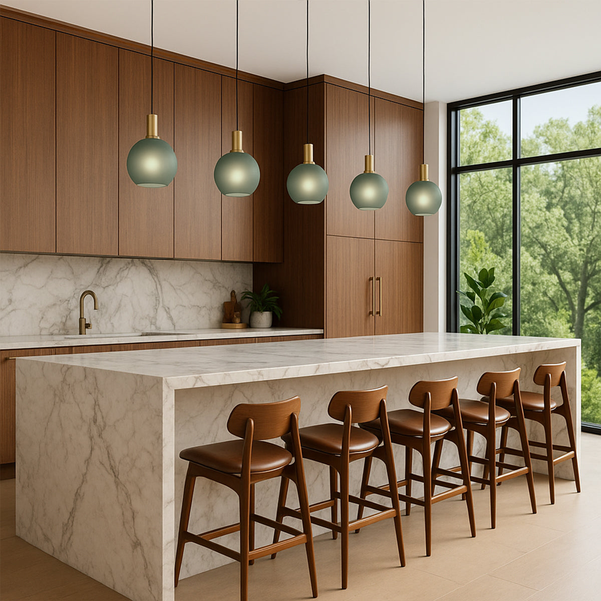 The Patino range offers an exquisite lighting solution with its captivating design featuring glass sphere-shaped pendants. Available in three distinct sizes, this collection allows for versatile placement in various settings. The pendant range also comes in three stylish colour options - Amber, Smoke, and Green.