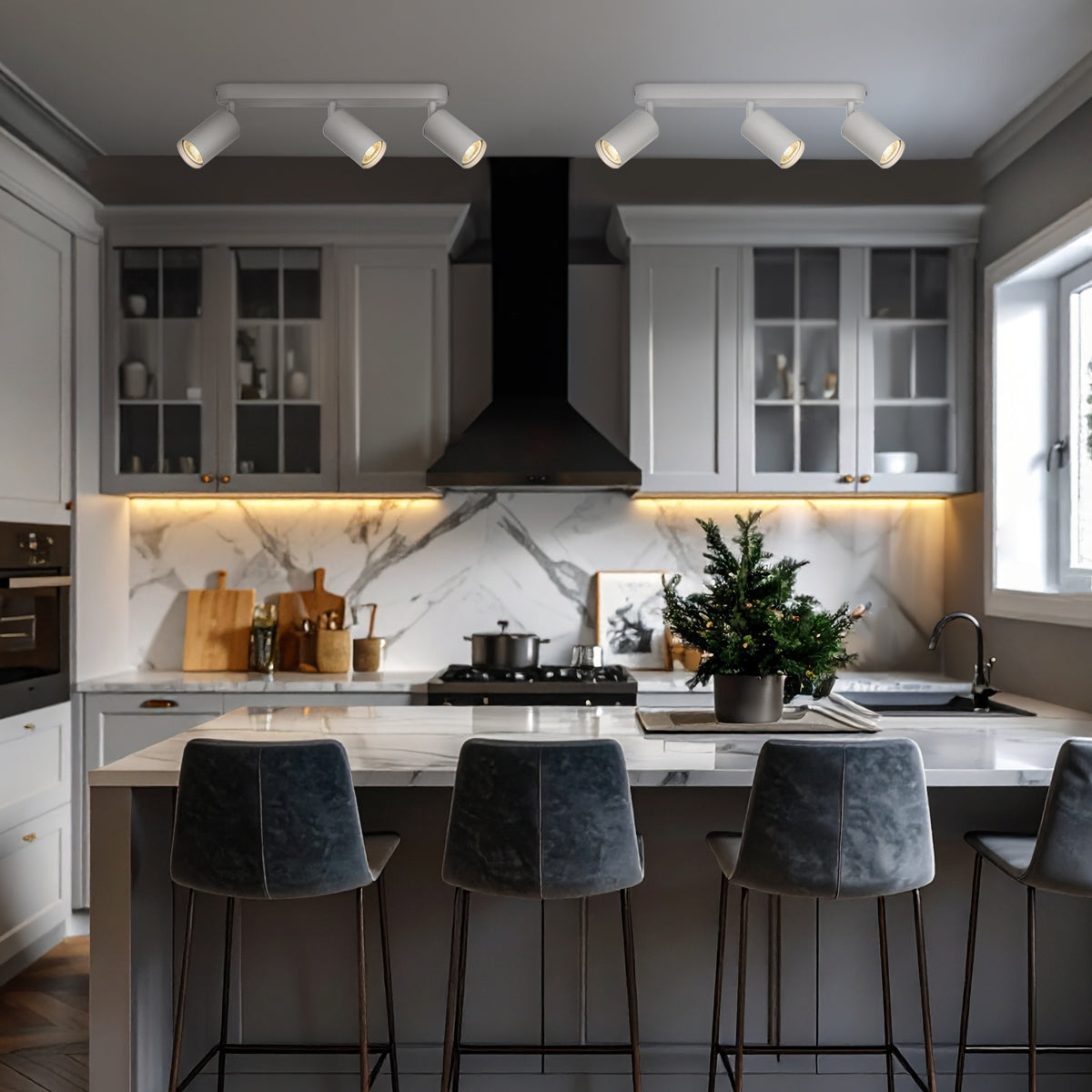 The Picard Spot Light is your go-to for sleek, modern indoor lighting with versatility to match any space. Whether you're highlighting artwork, creating a cozy reading nook, or simply adding style to your hallway or kitchen, the Picard gets the job done beautifully. Available in 1 to 5 light options, this fixture lets you tailor the lighting to your needs. Choose between black or white finishes, both with a stylish sand texture that adds a subtle touch of sophistication. Each spotlight includes a GU10 globe and features 3CCT technology, allowing you to switch between 3000K warm white, 4000K neutral white, or 5000K cool white to suit your mood or activity. Each spotlight also features a 360-degree rotatable head, giving you full flexibility to direct light exactly where it’s needed most. Whether you're after soft ambient lighting or crisp task lighting, the Picard adapts seamlessly—making it perfect for living rooms, kitchens, hallways, or even home offices.