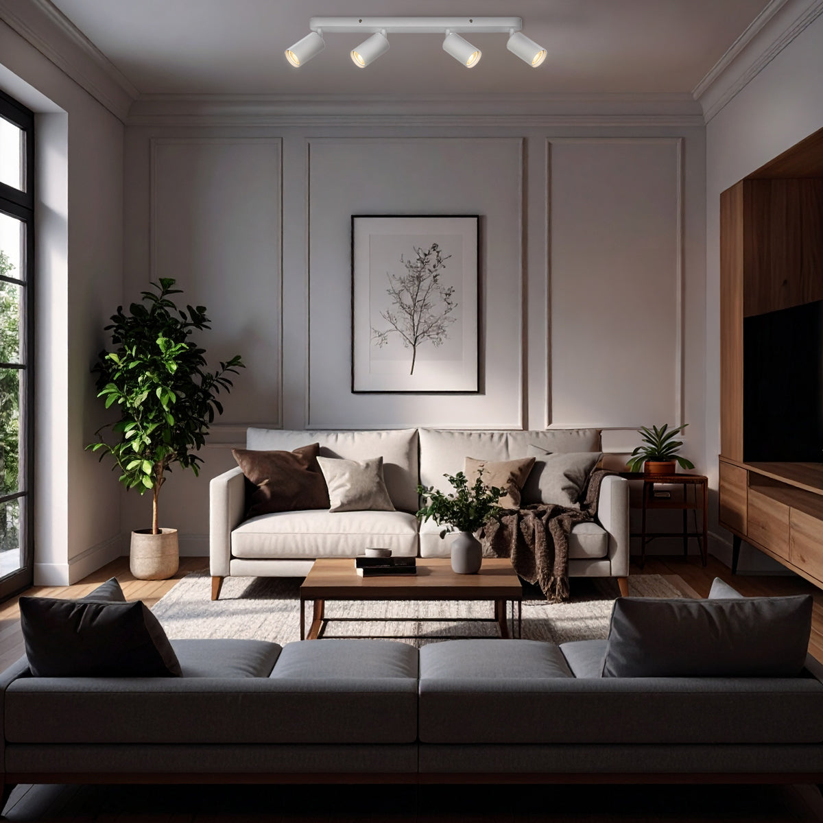 Available in 1 to 5 light options, this fixture lets you tailor the lighting to your needs. Choose between black or white finishes, both with a stylish sand texture that adds a subtle touch of sophistication. Each spotlight includes a GU10 globe and features 3CCT technology, allowing you to switch between 3000K warm white, 4000K neutral white, or 5000K cool white to suit your mood or activity.