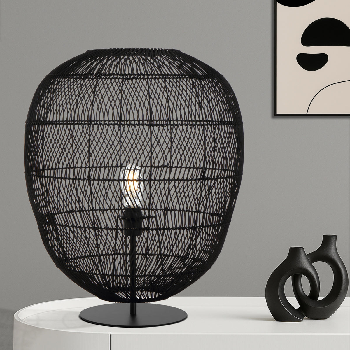 The Rana family is a high-quality construction of hand-woven rattan material forming a teardrop shaped shade. When illuminated, textured shadowing will enliven surrounding surfaces giving a wonderful accent to your living space. The Rana family includes pendant, table and floor lamp variations.