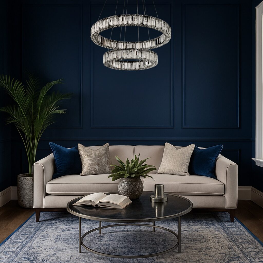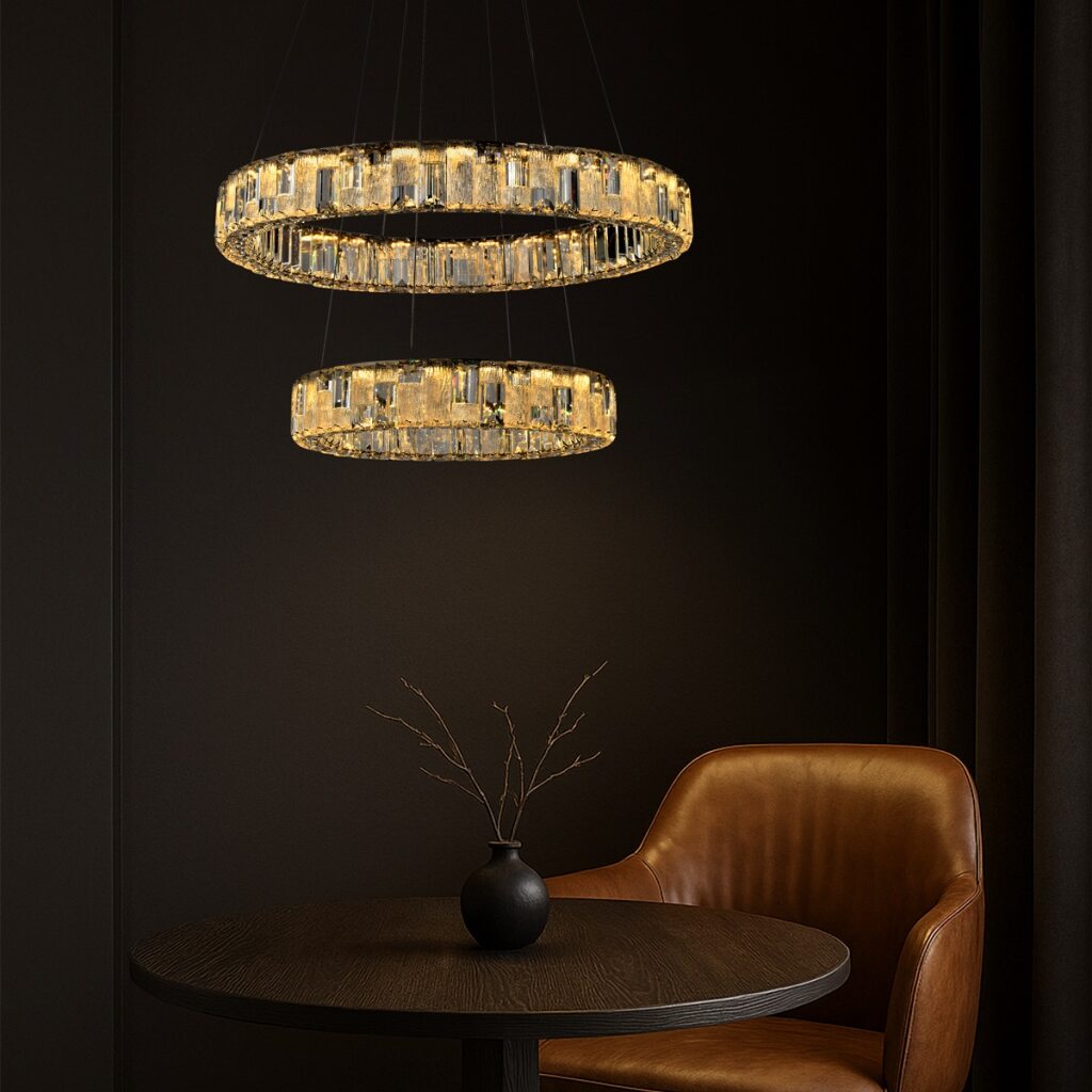 The Rias range is an exquisite blend of stainless steel and crystal materials. Available in gold or sleek chrome finishes, the Rias comes in a range of circular sizes in both pendant and close to ceiling fixtures to cater to various spaces and preferences. The integration of advanced LED technology ensures energy efficiency and long-lasting illumination. Adding to their versatility, the fixtures are dimmable by remote, allowing users to adjust the lighting ambiance to suit different moods and occasions.
