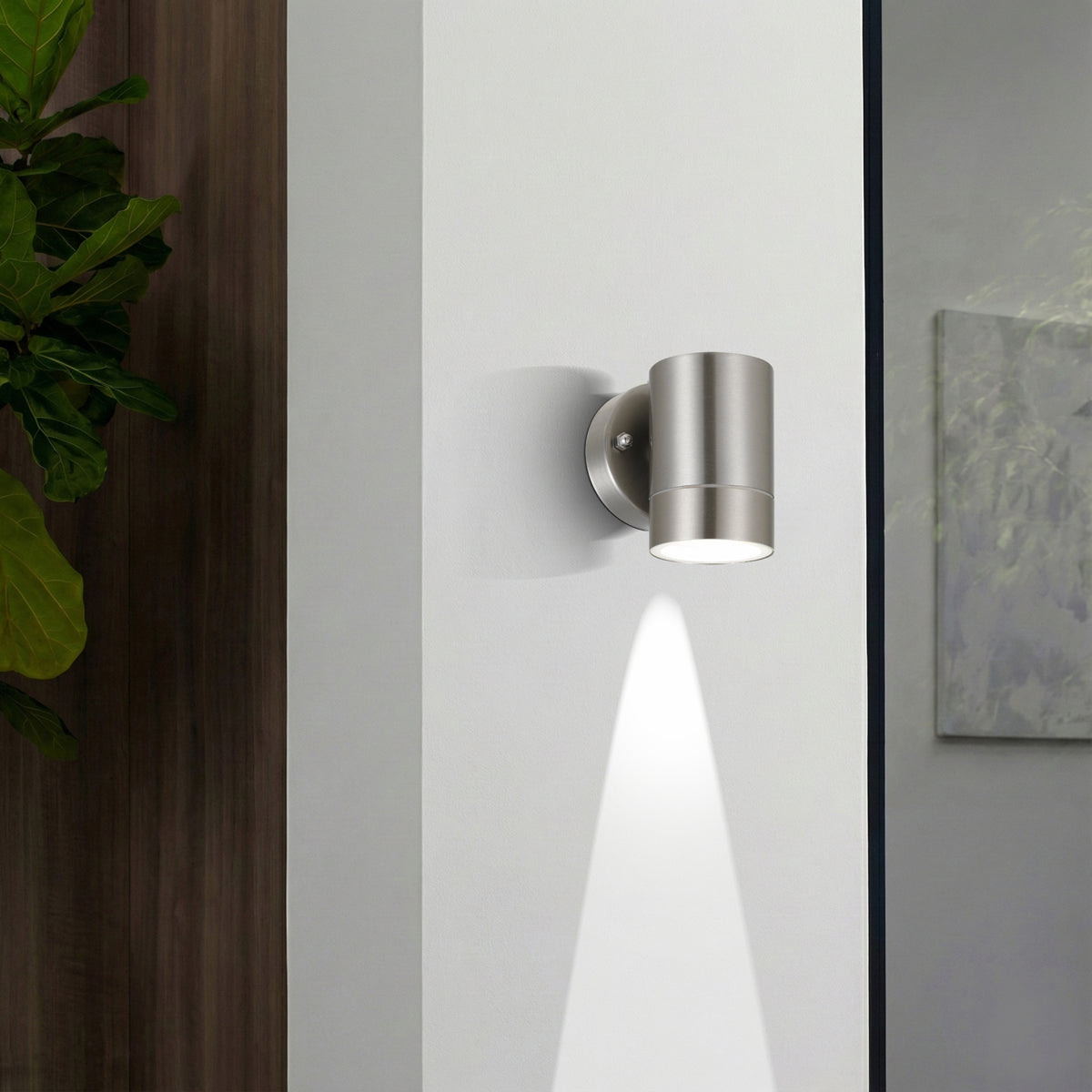 The Riva Exterior Wall Lamp: A Modern Illumination Marvel. With its sleek cylinder design, this wall lamp radiates light both upwards and downwards, creating a captivating visual effect. Choose from a timeless black or stylish stainless steel finish to complement your exterior décor beautifully.
