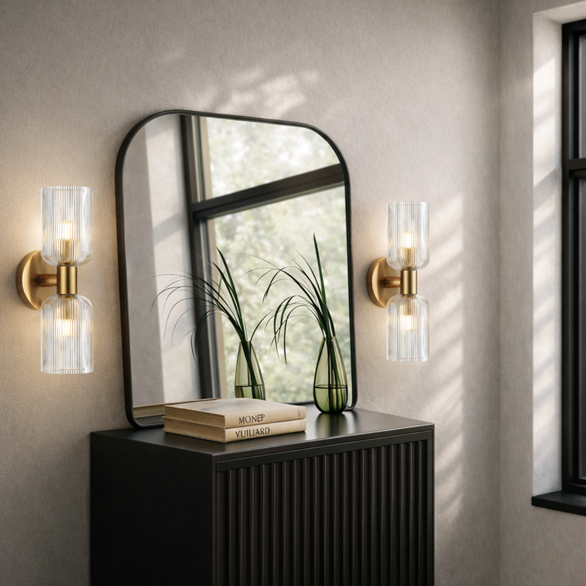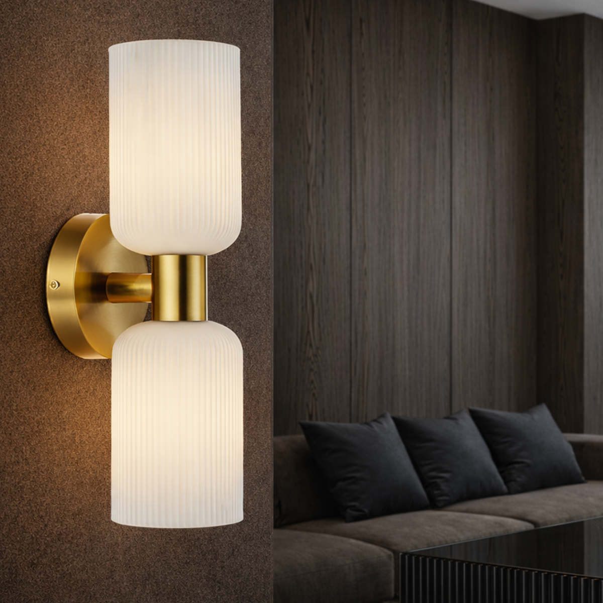 The Riven 2 Light Wall Light combines timeless elegance with modern charm. Featuring beautifully ribbed glass shades and available in a range of colour options, it brings a soft, ambient glow to any room. Perfect for flanking mirrors, illuminating hallways, or adding warmth beside the bed, the Riven suits a variety of decor styles — from contemporary to classic and everything in between.