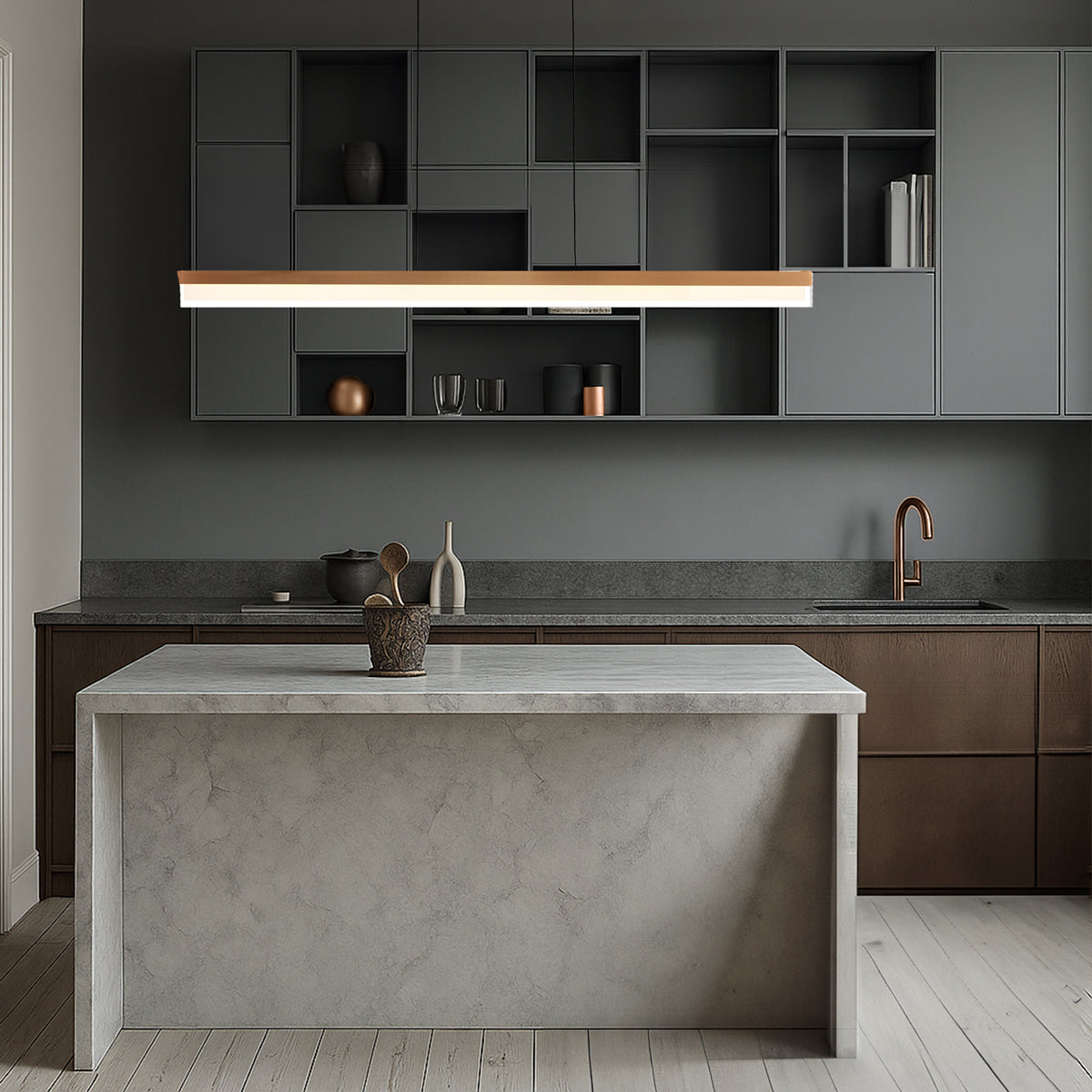 The Salas Pendant light epitomises contemporary sophistication with its sleek design and versatile functionality. Featuring integrated LED technology for efficient illumination, this pendant offers both style and practicality. Its height-adjustable feature allows for customisable placement, catering to various ceiling heights and design preferences. Available in three chic colours—Pearl Grey, Coffee Gold, and Brass—the brushed aluminum finish adds a touch of refinement to any interior space.