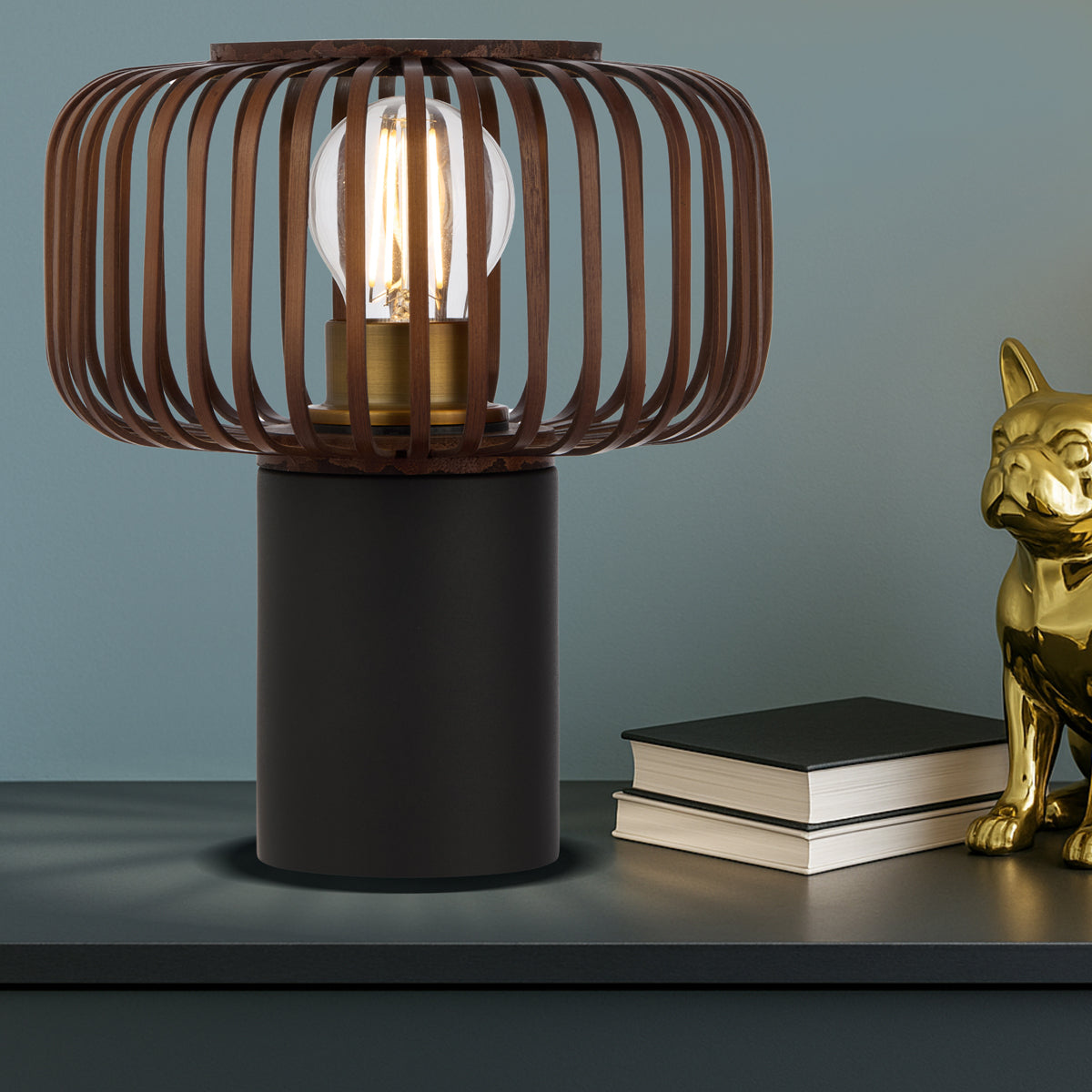 The Sorens table lamp combines an iron base with a bamboo shade, showcasing a contemporary Scandi/Japandi style. Available in two sizes and finished in either a brown or natural shade, it is the perfect accent piece for living room or bedroom spaces, adding warmth and modern elegance.