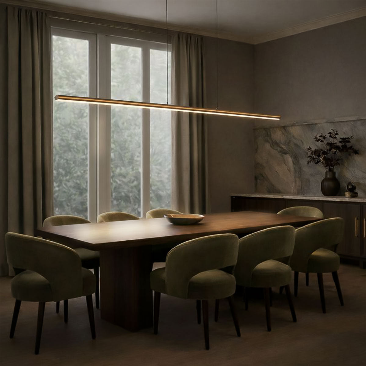 The Torben Linear Pendant Light brings modern sophistication and versatility to any space. Available in two lengths — 160cm or 240cm — and offered in either a brown or black sand-finish, it adapts seamlessly to different interior styles. The light features an integrated LED system with selectable 3CCT (3000K to 5000K), offering customizable warm-to-cool lighting to suit mood or time of day. It’s also dimmable, giving you control over brightness for ambiance or practicality. With a yoyo suspension that adjusts from 80cm up to 170cm, installation height is flexible — making it ideal over dining tables, kitchen islands, or workspaces.