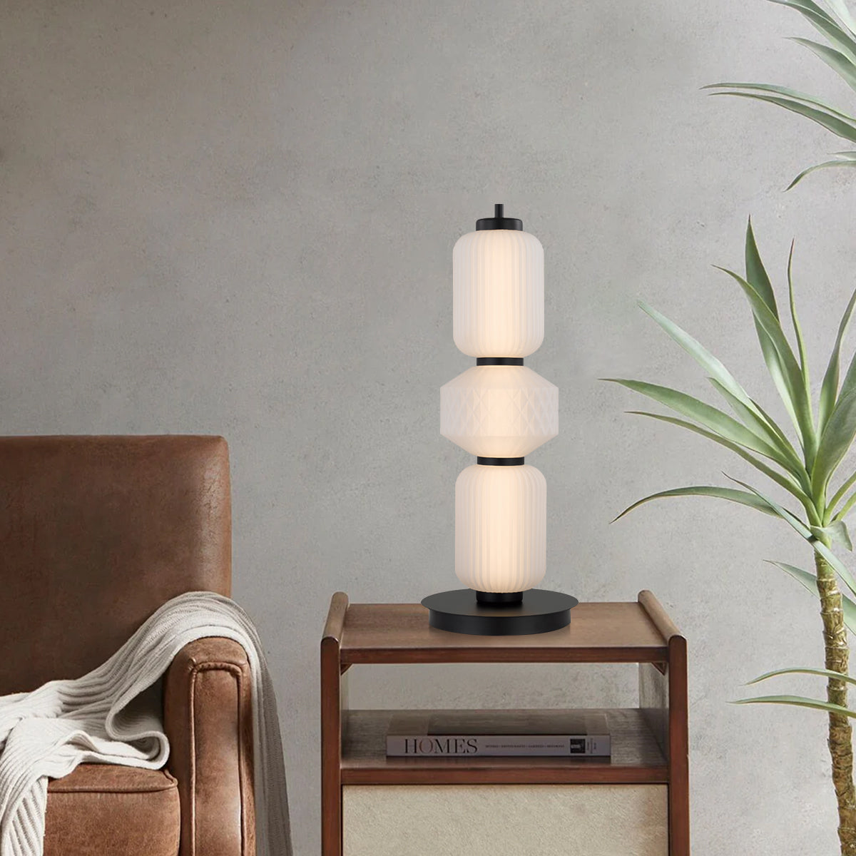 Introducing the Torso family of lighting fixtures—a distinctive collection that includes table lamps, floor lamps, wall lights, and pendants. Crafted from durable iron, each piece features a striking blend of diamond-cut and rippled glass shades. The 3-light and 5-light options offer versatile installation with two orientations to suit your space. Available in elegant black or brass finishes, these lamps are LED-integrated, providing a warm 3000K colour temperature for a cosy ambiance. Perfect for adding a touch of sophistication to any room.